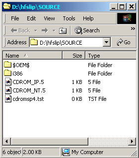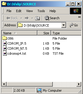 Copy the i386 directory from the Windows 2000 CD to D:\HFSLIP\SOURCE